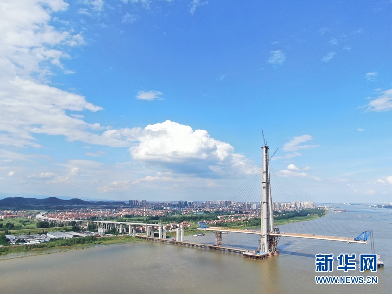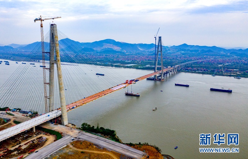 武穴長江大橋跨越黃岡武穴市和黃石陽新縣之間的長江水域,是湖北省麻城至陽新高速公路的組成部分,大橋連接線北接滬渝高速,南銜杭瑞高速。大橋及連接線全長約31公里,其中長江大橋主橋1403米,主跨808米,雙向6車道,設(shè)計速度100公里/小時,在同類型斜拉橋中排名國內(nèi)第七。(趙夢琪 柳志鵬 黃馬杰)