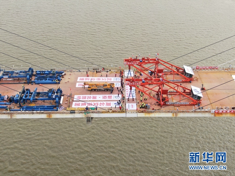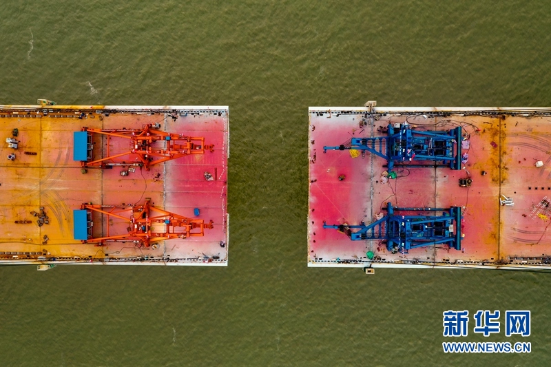 圖為武穴長江公路大橋正在合龍