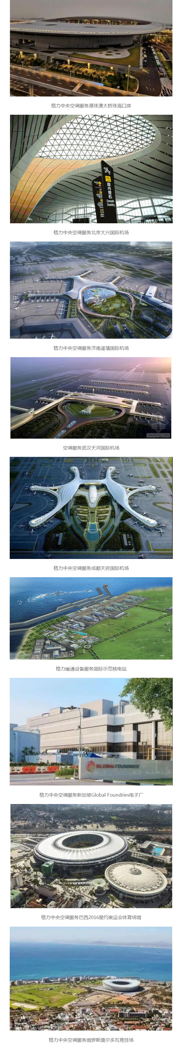 格力不斷加快自主創(chuàng)新步伐,以穩(wěn)定可靠、節(jié)能高效的制冷技術(shù),廣泛服務(wù)于國內(nèi)外眾多“超級工程”,包括北京大興機(jī)場、濟(jì)南遙墻國際機(jī)場、武漢天河國際機(jī)場、成都天府國際機(jī)場、人民大會堂、國核示范核電站、北京第一高樓中國尊、港珠澳大橋珠海口岸以及“一帶一路”核心樞紐、國家五大能源通道之一的巴基斯坦瓜達(dá)爾港項目乃至非洲尼日利亞的全球最大單體煉油廠,都有格力的身影。