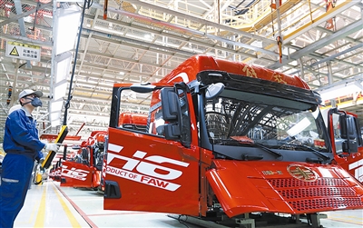 ■在位于青島即墨汽車制造產(chǎn)業(yè)集聚區(qū)的一汽解放青島分公司,工人正在現(xiàn)代化生產(chǎn)車間忙碌。