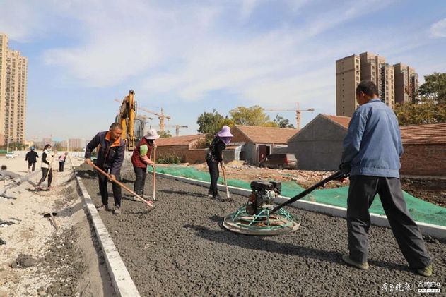 會(huì)通路北延工程起點(diǎn)位于漁皇路,北至詩圣路,毗鄰兒童公園,是南北走向的一條城市次干路,全長600米。11月3日,記者在現(xiàn)場看到,工人正在鋪設(shè)透水混凝土,在工程綠色圍擋周圍,站了不少圍觀市民。“我一直很關(guān)注這條路,因?yàn)橥ㄜ嚭螅梢灾苯娱_車到詩圣路和火炬路,再不用繞行東趙路,而且去兒童公園更近了。”