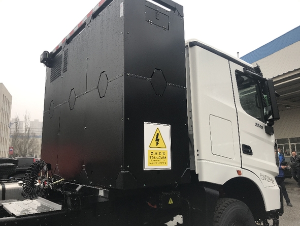 北奔重卡的新能源卡車,黑色的箱體為電池
