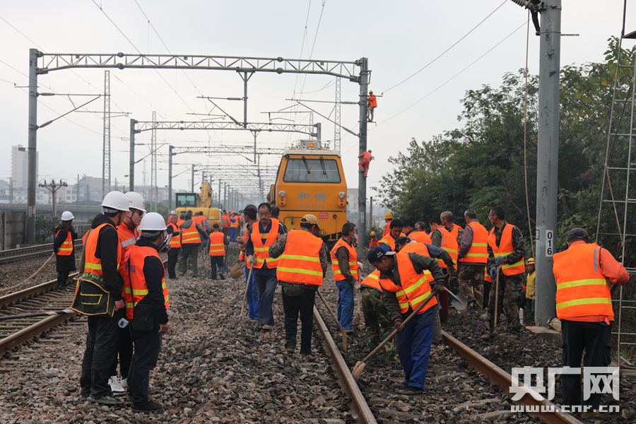 央廣網(wǎng)九江11月25日消息(記者謝元森 通訊員桂訓煒 駱道明 王永飛)11月24日上午,經(jīng)過300多人235分鐘的緊張有序施工,由中鐵四局施工的安九高鐵改移武九鐵路上行線撥接順利完成,標志著安九高鐵江西段施工通道全部打通。