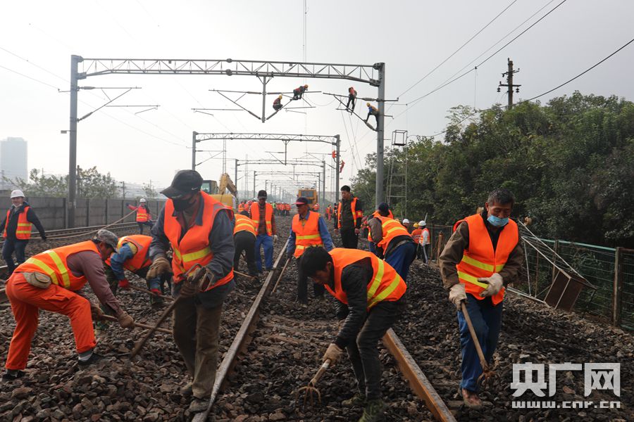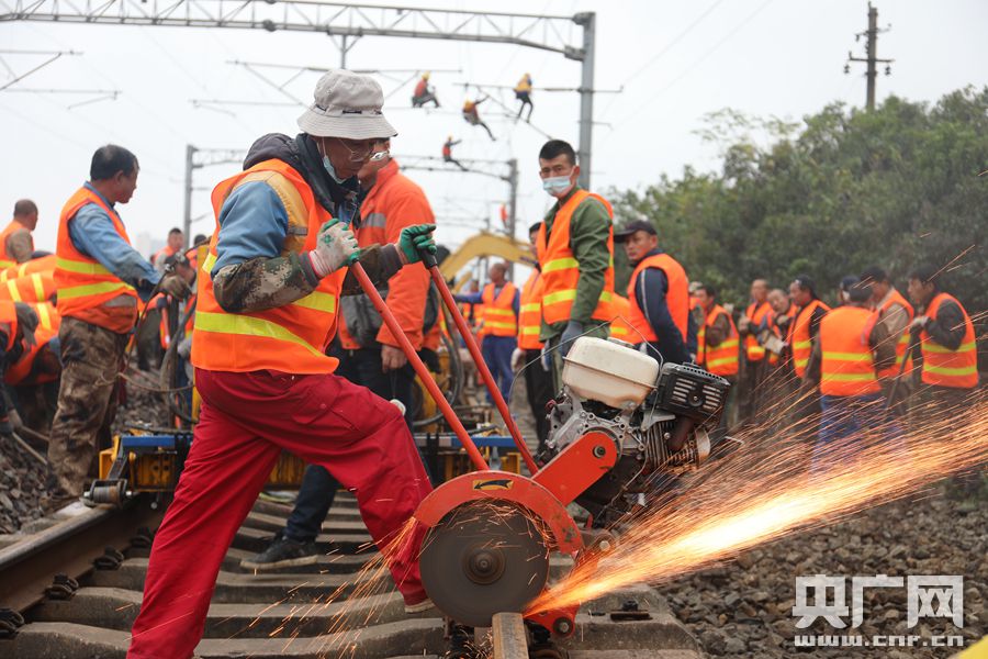 根據(jù)安排,現(xiàn)場300多名工人同時作業(yè),鋼軌切割、線路撥接、大機整道等工作穩(wěn)步推進。其中,在施工中,臨近的京九鐵路仍有列車通行,施工方搶抓列車運行空窗期抓緊施工,經(jīng)過235分鐘有序作業(yè),在規(guī)定時間內(nèi)完成所有施工任務,為后續(xù)的架梁及無砟軌道施工提供了作業(yè)面。