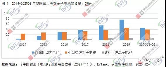 按應(yīng)用領(lǐng)域分類,鋰離子電池主要分為汽車用動(dòng)力電池(EV Lib)、小型類鋰離子電池(Small Lib)和儲(chǔ)能用鋰離子電池(ESS Lib)三大類,其中,汽車用動(dòng)力電池出貨量主要受新能源汽車銷量的影響,近年來(lái)各國(guó)對(duì)環(huán)保的重視驅(qū)動(dòng)新能源汽車滲透率逐步提高,雖然上半年受疫情影響,汽車用動(dòng)力電池出貨量同比下滑45.8%,但是下半年新能源汽車產(chǎn)銷量的單月同比大幅增長(zhǎng),截止到202011月,我國(guó)汽車用動(dòng)力電池累計(jì)出貨量62.5Gwh,累計(jì)同比下降幅度已經(jīng)收窄到7.0%。小型類鋰離子電池主要用于手機(jī)、電腦、電動(dòng)工具、電動(dòng)二輪車及新興消費(fèi)應(yīng)用等領(lǐng)域,2020Q1-Q3,在5G手機(jī)、電動(dòng)工具和電動(dòng)兩輪車用電池的帶動(dòng)下,我國(guó)小型類鋰離子電池出貨量達(dá)到39.7Gwh,同比增長(zhǎng)16.5%;儲(chǔ)能用鋰離子電池仍處于市場(chǎng)導(dǎo)入階段,出貨量較少,但增長(zhǎng)速度較快,在基站建設(shè)、海外儲(chǔ)能和國(guó)內(nèi)發(fā)電側(cè)儲(chǔ)能項(xiàng)目的帶動(dòng)下,2020Q1-Q3我國(guó)儲(chǔ)能電池出貨量為9.1GWh,已經(jīng)超過(guò)去年全年水平。