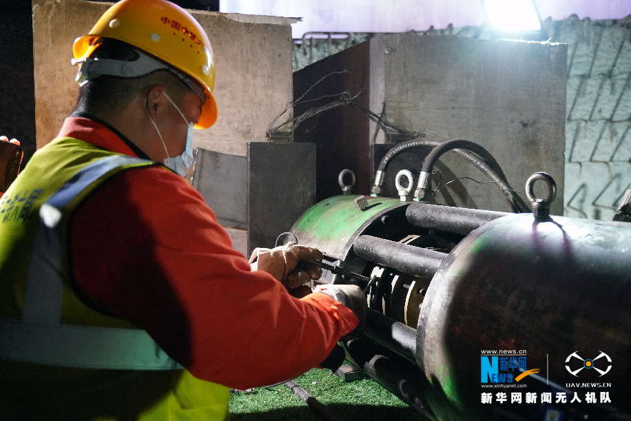 轉(zhuǎn)體前,施工人員在對(duì)設(shè)備做最后的檢測(cè)。新華網(wǎng)發(fā)(郜戰(zhàn)勝 攝)