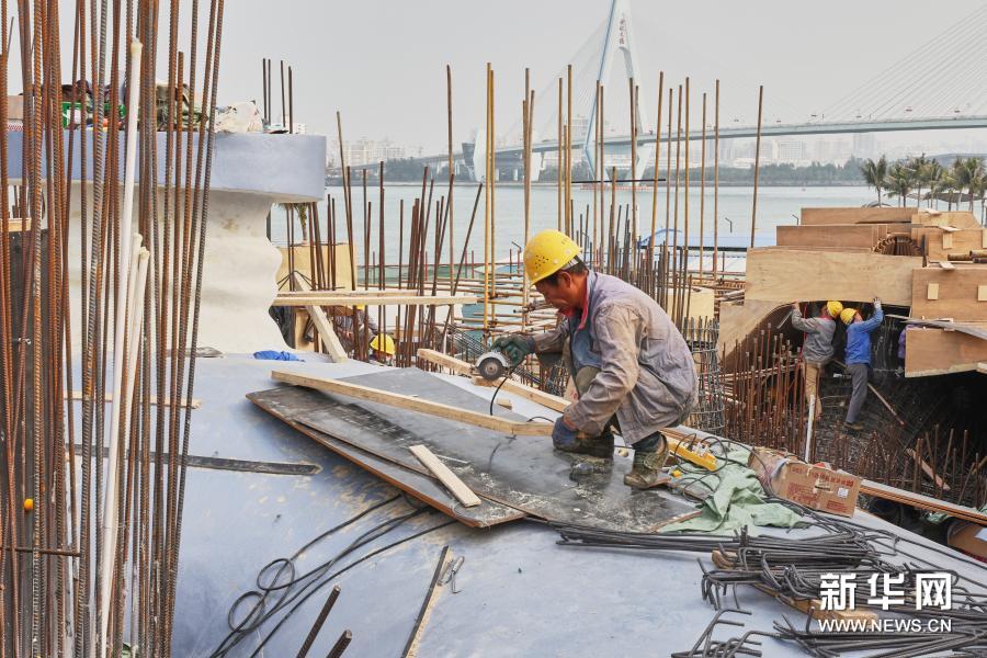 1月6日,工人在??谑性贫磮D書館施工現(xiàn)場作業(yè)。新華社記者 張麗蕓 攝
