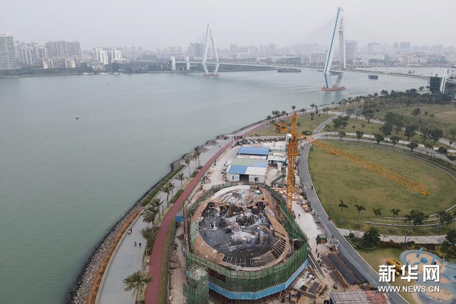 1月6日拍攝的海口市云洞圖書館項(xiàng)目施工現(xiàn)場(無人機(jī)照片)。海口市云洞圖書館項(xiàng)目施工正在穩(wěn)步推進(jìn),預(yù)計(jì)今年建成。云洞圖書館建成后將成為一個(gè)兼具圖書館和濱海步道驛站功能的公共空間,周邊還可舉行音樂會等戶外演出活動。新華社記者 張麗蕓 攝