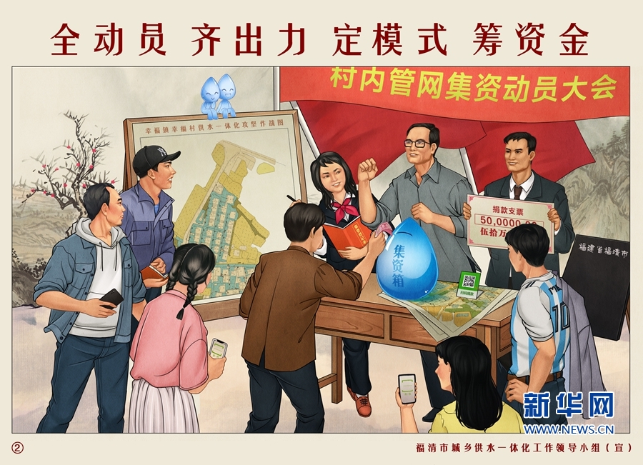 不僅是通過直觀生動的插畫,在推進城鄉(xiāng)供水一體化建設(shè)過程中,福清還大量制作橫幅、傳單、宣傳手冊等,在微博、微信、短信、廣播等線上和線下渠道,用村民聽得懂的直白話、看得懂的圖形標、算得清的戶均賬進行廣泛宣傳,做到全民知曉、全民參與。