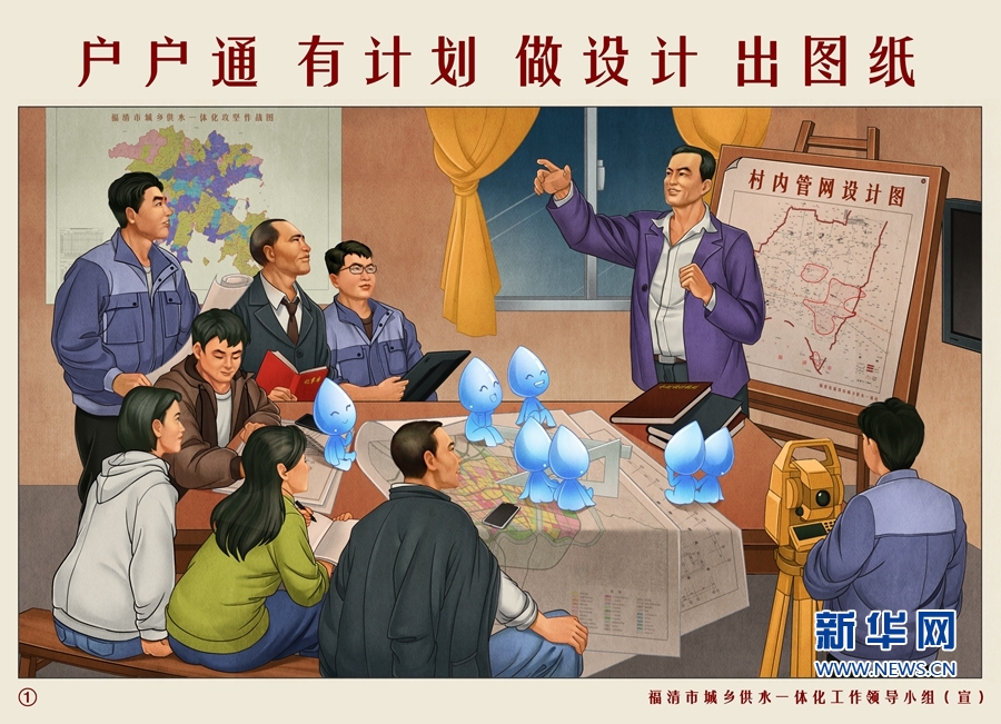 戶戶通 有計劃 做設(shè)計 出圖紙。新華網(wǎng)發(fā)(福清市供水辦供圖)