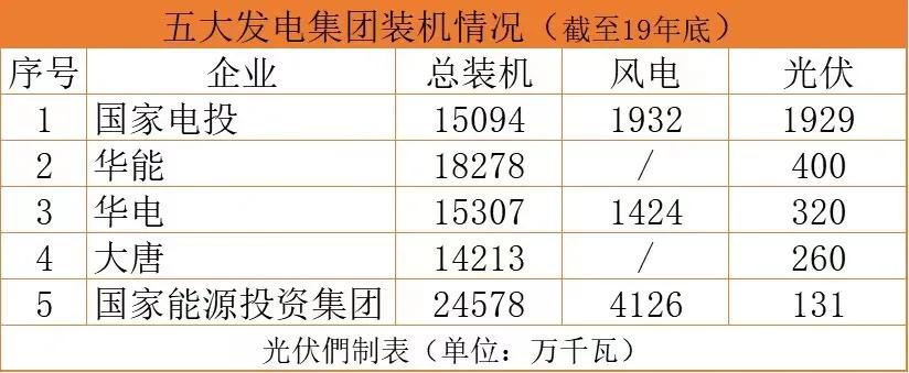 與其他發(fā)電集團(tuán)不同的是,在可再生能源領(lǐng)域的布局中,國家能源集團(tuán)還是全球最大的風(fēng)電投資商,并且一度暫停光伏投資數(shù)年。截至2019年底,該集團(tuán)持有超過40GW的風(fēng)電裝機(jī),與之形成鮮明對比的是,光伏伏裝機(jī)卻位居五大發(fā)電集團(tuán)最后一位,僅為1.31GW。盡管在今年的光伏項目資源競爭中,也多次出現(xiàn)了國家能源集團(tuán)的身影,但從公開的項目信息來看,與大唐、華能等同樣光伏體量較小的發(fā)電集團(tuán)相比,國家能源集團(tuán)在光伏方面的投資力度仍略遜一籌。