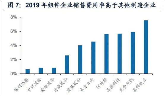 組件是光伏行業(yè)唯一具有消費(fèi)屬性的環(huán)節(jié),銷售費(fèi)用率在產(chǎn)業(yè)鏈中處于最高水平。