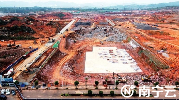 南寧-崇左城際鐵路崇左南站綜合體PPP項(xiàng)目,機(jī)聲隆隆,一派熱火朝天的建設(shè)場(chǎng)面 記者 賴有光 攝