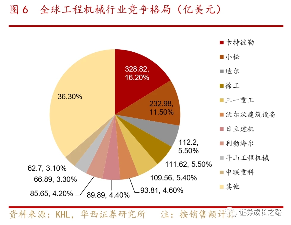 5、2010-2011年銷售的大量設(shè)備迎來集中更新。工程機(jī)械使用壽命在8-12年左右,使得工程機(jī)械有一定的投資周期。我國工程機(jī)械行業(yè)在2008年之前一直處于快速增長期,基建、房地產(chǎn)投資增速處于高位,從而帶動挖掘機(jī)銷量增速處于高位。2009-2011受“四萬億”政策刺激,整個工程機(jī)械行業(yè)迎來爆發(fā)式非理性增長,高盈利和下游需求激增使得各大廠商大量生產(chǎn),并通過降低信用銷售首付比例和延長還款期來吸引客戶,提前透支客戶需求。以挖掘機(jī)銷量數(shù)據(jù)為例,2008年之前挖掘機(jī)銷量增速和基建投資增速相關(guān)性較大,2008-2011年信用透支下非理性需求占據(jù)主導(dǎo),2016-2020年挖掘機(jī)銷量增速顯著高于基建和房地產(chǎn)投資增速,一方面是因?yàn)榛ɡ塾嬐顿Y完成額占比和規(guī)模在顯著提高,另一方面由于下游需求的提升使得在2011年左右購買的存量挖掘機(jī)有進(jìn)行更新?lián)Q代的必要。以挖掘機(jī)為例,經(jīng)測算,2020年更新?lián)Q代數(shù)量占國內(nèi)銷量的51.92%,占總銷量(含出口)的46.44%。