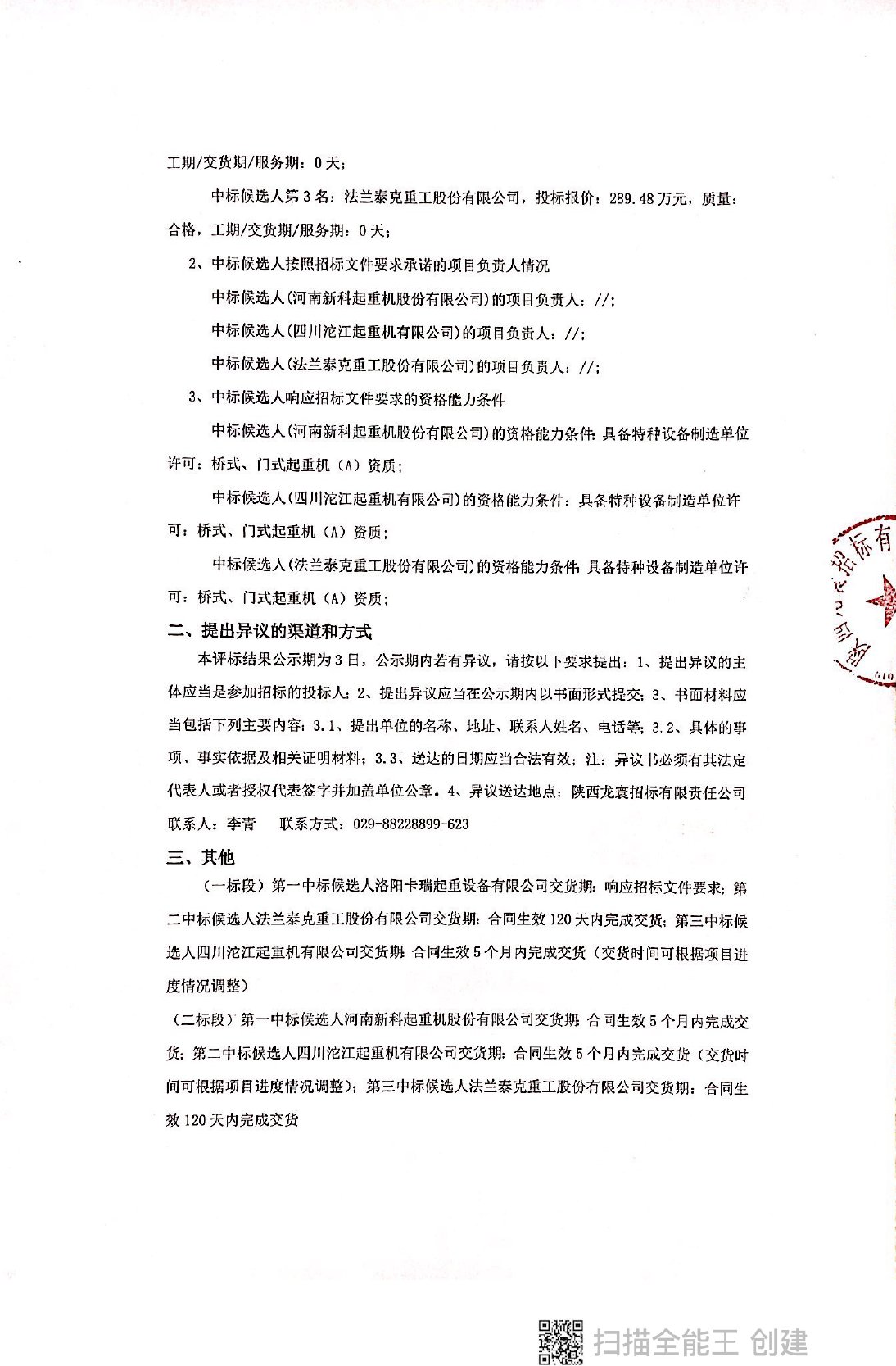 移動(dòng)版:陜西:鈦材技改項(xiàng)目廠房橋式起重機(jī)中標(biāo)候選人公示