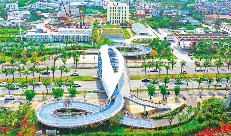 投入使用的“飛魚”天橋。 海報集團全媒體中心記者 汪承賢 攝