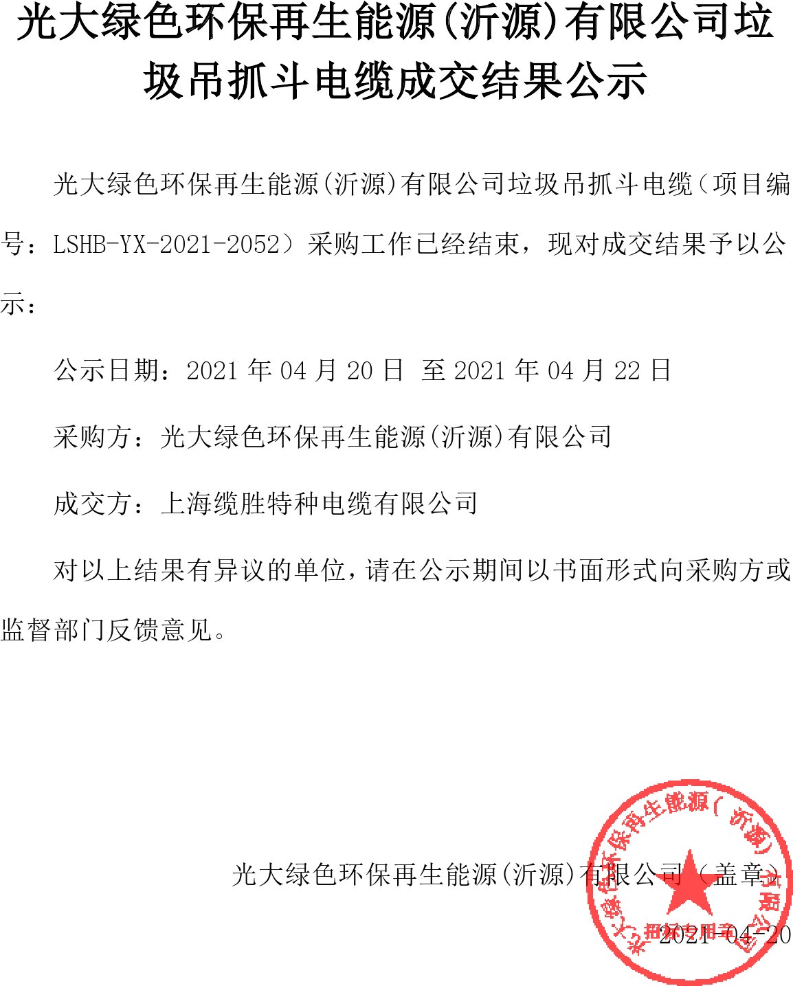 移動版:山東:垃圾吊抓斗電纜成交結(jié)果公示