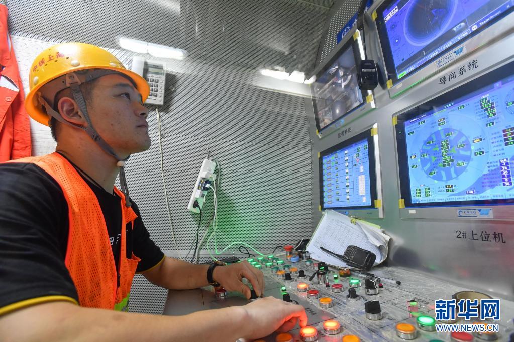 4月28日,施工人員在深圳地鐵14號線共建管廊大縱坡隧道操作盾構機掘進。新華社記者 劉大偉 攝