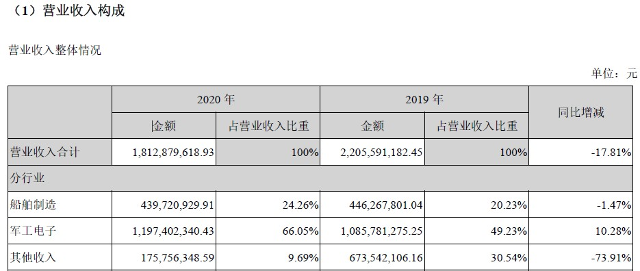 根據(jù)2020年年報(bào),亞光科技的船舶制造收入僅占總營(yíng)業(yè)收入的20%。