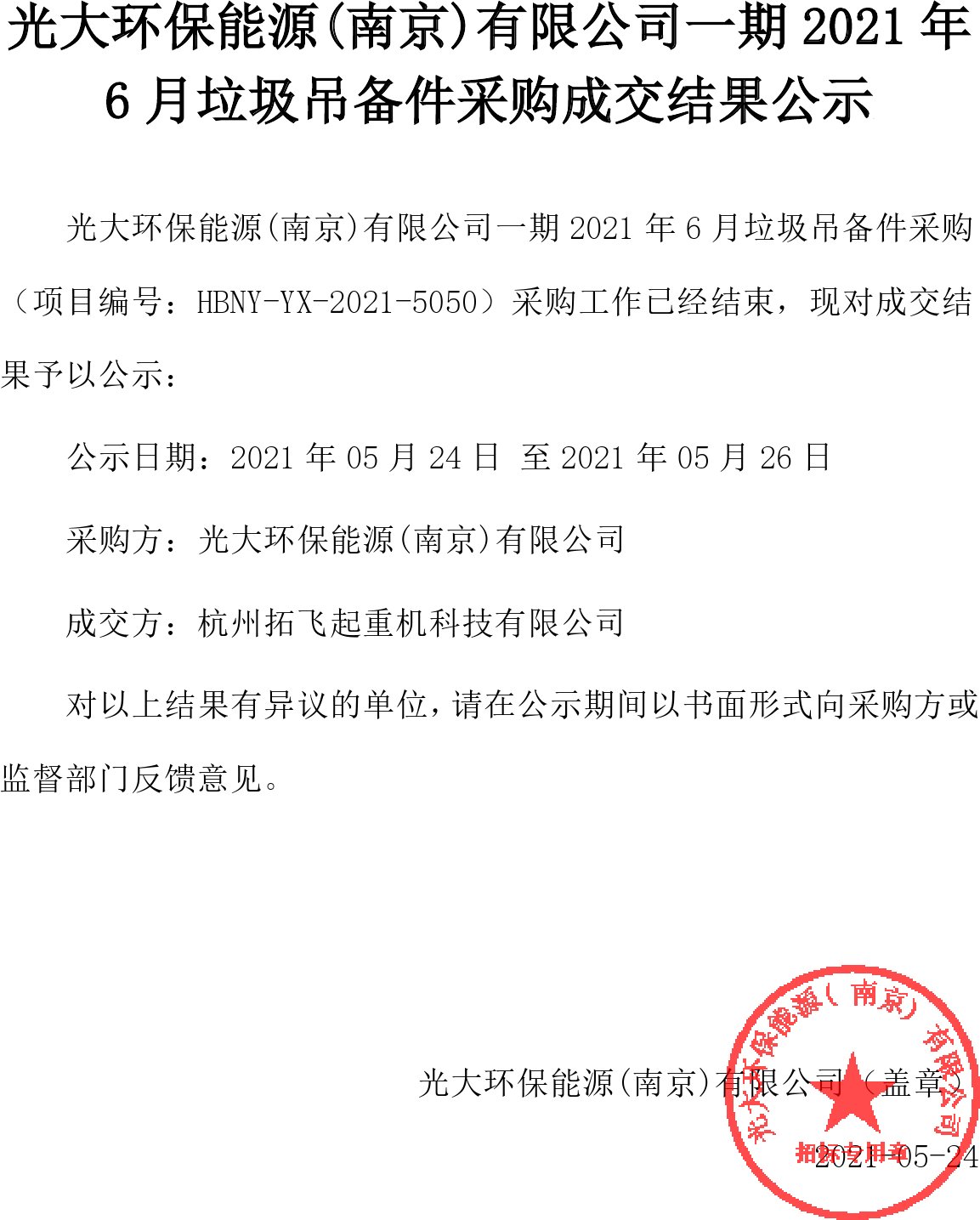 移動(dòng)版:江蘇:一期2021年6月垃圾吊備件采購(gòu)成交結(jié)果公示