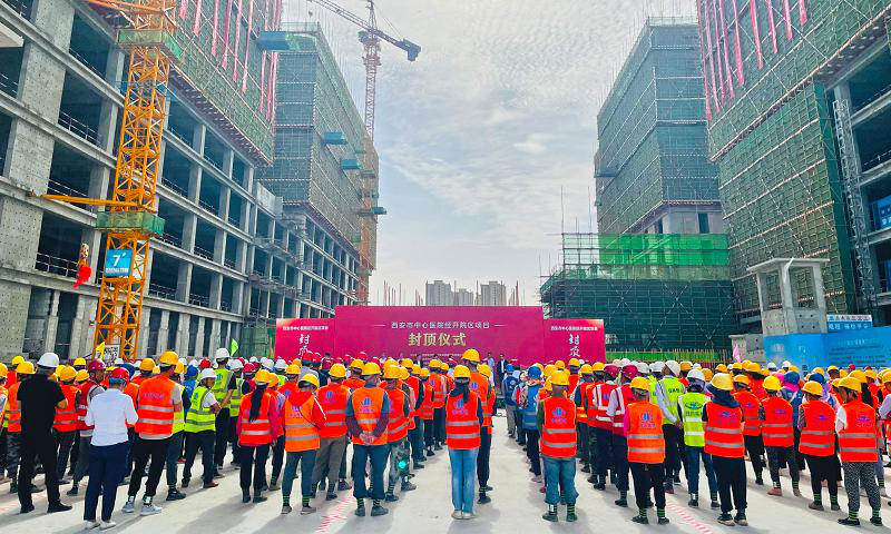 占地170畝 設(shè)計(jì)床位1500張 西安市中心醫(yī)院經(jīng)開(kāi)院區(qū)項(xiàng)目封頂