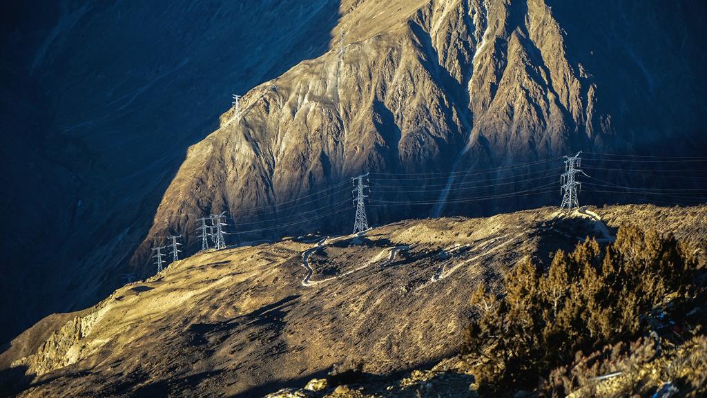 藏中聯(lián)網(wǎng)工程輸電線路(2017年12月20日攝)。新華社發(fā) (盧忠東 攝)