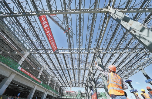 5月30日上午,北京豐臺(tái)站歷時(shí)2年多的建設(shè),提前33天實(shí)現(xiàn)主體結(jié)構(gòu)全面封頂。 本報(bào)記者 劉平攝