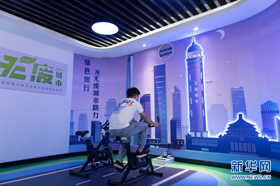 “六五”環(huán)境日前夕,重慶市首個(gè)“無(wú)廢城市”宣傳教育基地正式對(duì)外開(kāi)放,圖為綠色出行點(diǎn)亮城市展區(qū)。新華網(wǎng) 耿駿宇 攝