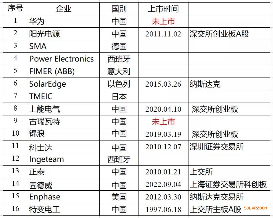 根據中國光伏行業(yè)協(xié)會的統(tǒng)計數(shù)據,2019年全球銷量前16的逆變器企業(yè),只有2家非上市公司,而行業(yè)龍頭——華為,就是其中的一家。如下圖所示。
