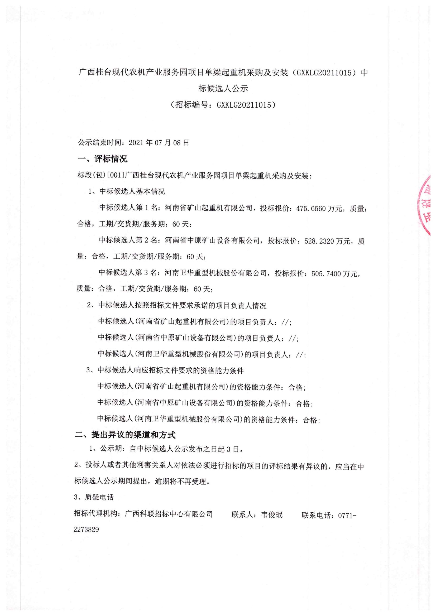移動版:廣西;單梁起重機(jī)采購及安裝中標(biāo)候選人公示