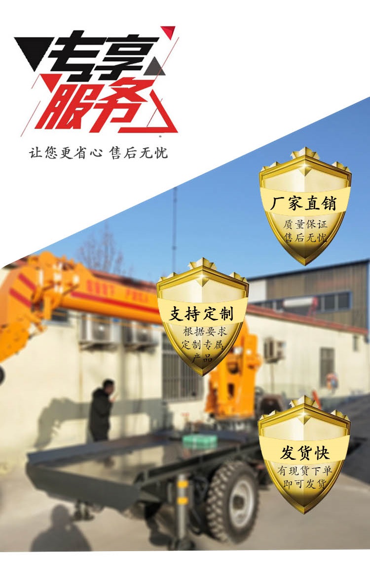 二、其次是吊機,這個吊機是我們公司研發(fā)制造的,具有多的研發(fā)和優(yōu)化后的產(chǎn)物,高性能高品質(zhì)安全系數(shù)達到把控的地步,堅固的大臂以及支臂,支臂是伸縮臂,如同孫悟空的金箍棒的一般,任意伸縮變長變短,隨您心意,隨您差遣,配備3米*3節(jié)、3.5米*4節(jié)等的支臂 支持定制長度,為您上九天鉤月,下五洋吊鱉,液壓控制操作,靈活多變 操作起來輕松, 配備堅固的吊繩,既能給您安全又能給您獨特的吊重。