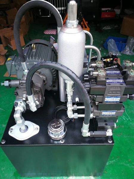 液壓缸是液壓傳動(dòng)系統(tǒng)中的執(zhí)行元件, 它是把液壓能轉(zhuǎn)換成機(jī)械能的能量轉(zhuǎn)換裝 置。液壓馬達(dá)實(shí)現(xiàn)的是連續(xù)回轉(zhuǎn)運(yùn)動(dòng),而液壓缸實(shí)現(xiàn)的則是往復(fù)運(yùn)動(dòng)。液壓缸的結(jié)構(gòu) 型式有活塞缸、柱塞缸、擺動(dòng)缸三大類,活 塞缸和柱塞缸實(shí)現(xiàn)往復(fù)直線運(yùn)動(dòng),輸出速度 和推力,擺動(dòng)缸實(shí)現(xiàn)往復(fù)擺動(dòng),輸出角速度 (轉(zhuǎn)速) 和轉(zhuǎn)矩。液壓缸除了單個(gè)地使用 外,還可以兩個(gè)或多個(gè)地組合起來(lái)或和其他 機(jī)構(gòu)組合起來(lái)使用。以完成特殊的功用。液壓缸結(jié)構(gòu)簡(jiǎn)單,工作可靠,在機(jī)床的 液壓系統(tǒng)中得到了廣泛的應(yīng)用。液壓動(dòng)力泵站為液壓系統(tǒng)中提供液壓動(dòng)力的泵站,它一般采用符合液