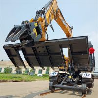 挖掘機(jī)枕木夾具是我廠新設(shè)計生產(chǎn)的鐵路維護(hù)屬具工作裝置之一,它是可以通過快換連接器安裝到挖掘機(jī)上的前端工作裝置。分為橫置式、伸縮式(5抓、7抓等)。適用于5-16噸挖掘機(jī)使用。