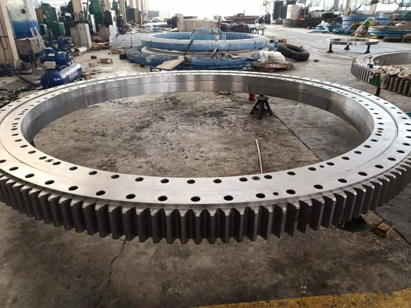 交叉圓柱滾子轉(zhuǎn)盤軸承主要由內(nèi)圈、外圈、單排滾子、保持架(隔離塊)、密封裝置等零件組成。交叉圓柱滾子轉(zhuǎn)盤軸承的圓柱滾子(軸線)在滾道上呈交叉分布,圓柱滾子的長徑比小于1,滾子在運動時存在輕微的滑動。通過調(diào)整滾子交叉數(shù)量和接觸角,可以應(yīng)對各種工況條件下產(chǎn)生的不同軸向力、傾覆力矩和徑向力組合。交叉圓柱滾子轉(zhuǎn)盤軸承的內(nèi)圈或外圈有整體式和分體式結(jié)構(gòu)之分,為減少滾子間的摩擦,通常設(shè)計有保持架或隔離塊。當(dāng)載荷較大時采用滿裝滾子結(jié)構(gòu),但摩擦阻力大,摩擦還易造成滾子間接觸部位產(chǎn)生沿圓周方向的溝痕。