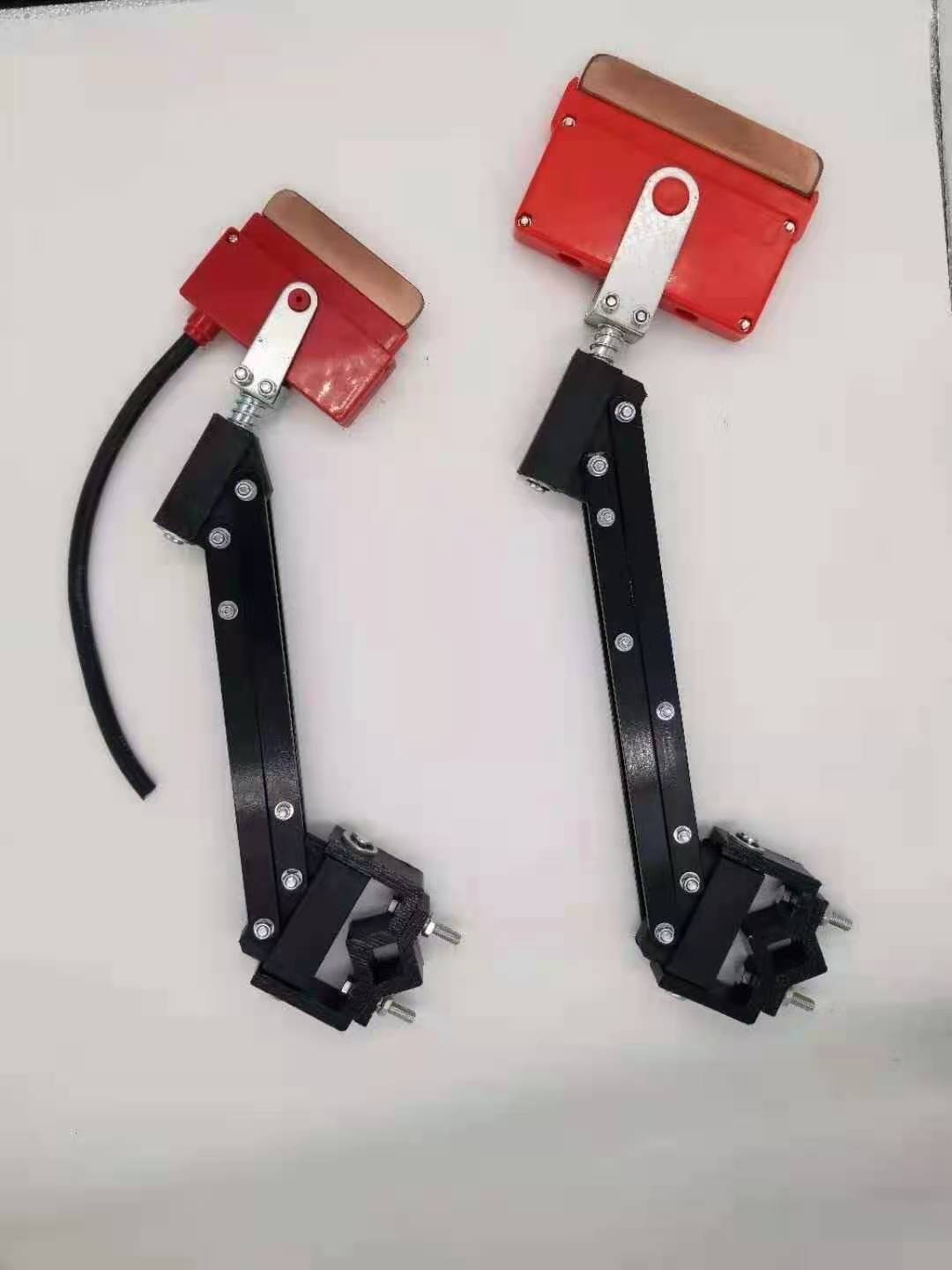 集電器滑觸線系統(tǒng)中集電側拾取電能的主要裝置,它通過集電刷與導軌的滑動接觸,將電能直接傳導至用電器,從而實現(xiàn)系統(tǒng)的移動供電。集電器由機械結構的張力裝置和直接與導軌滑動接觸的集電刷兩部分組成。