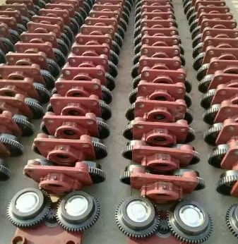 運行機構也稱電動小車、運行小車,跑車,由帶制動器的錐形轉子電動機通過運行減速器帶動小車的一對主動輪,使整個葫蘆沿著工字鋼軌道移動;5t(含5t)以下為一套驅動裝置,10t、16t采用兩套驅動裝置;當用于箱形梁或與H型鋼配套使用時,車輪踏面為直線形,用于工字鋼軌道時,車輪踏面為圓弧形。