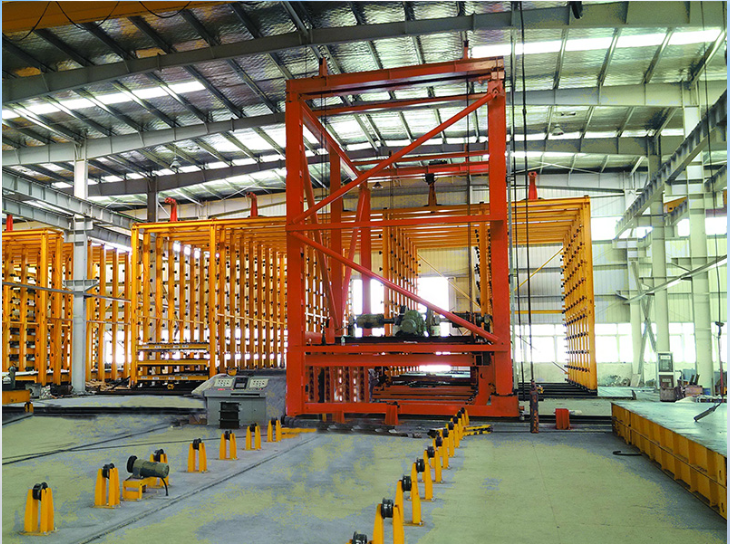 綠色建筑墻板養(yǎng)護(hù)窯主要用于輔助集成化預(yù)制板的生產(chǎn)工藝,可實(shí)現(xiàn)集成預(yù)制板的搬運(yùn)、存儲(chǔ)、堆垛、養(yǎng)護(hù)等功能。該設(shè)備由窯體、行走機(jī)構(gòu)、升降機(jī)構(gòu)、存取機(jī)構(gòu)、液壓系統(tǒng)、電氣控制系統(tǒng)和加濕溫控裝置等七部份組成。該產(chǎn)品采用自動(dòng)化控制系統(tǒng),能夠在生產(chǎn)線上自動(dòng)識(shí)別、自動(dòng)抓取、自動(dòng)存取等作業(yè),并通過(guò)窯體內(nèi)保溫、加濕設(shè)備對(duì)其進(jìn)行養(yǎng)護(hù)。