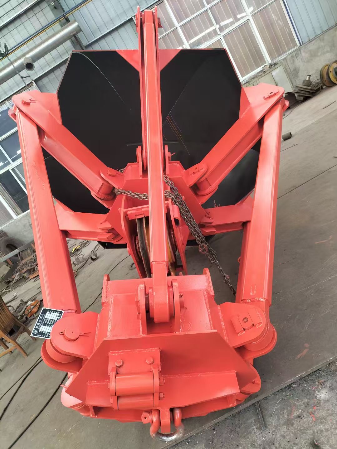 抓斗,是指起重機(jī)抓取干散貨物的專用工具。由兩塊或多塊可啟閉的斗狀顎板合在一起組成容物空間,裝料時(shí)使顎板在物料堆中閉合,物料被抓入容物空間,卸料時(shí)顎板在料堆上懸空狀態(tài)下開啟,物料散落在料堆上,顎板的開合一般由起重機(jī)起升機(jī)構(gòu)鋼絲繩操縱。抓斗作業(yè)無繁重體力勞動(dòng),可達(dá)到較高的裝卸效率并確保安全,是港口主要干散貨裝卸工具。按作業(yè)貨物的種類,可分為礦石抓斗、煤炭抓斗、糧食抓斗、木材抓斗等。