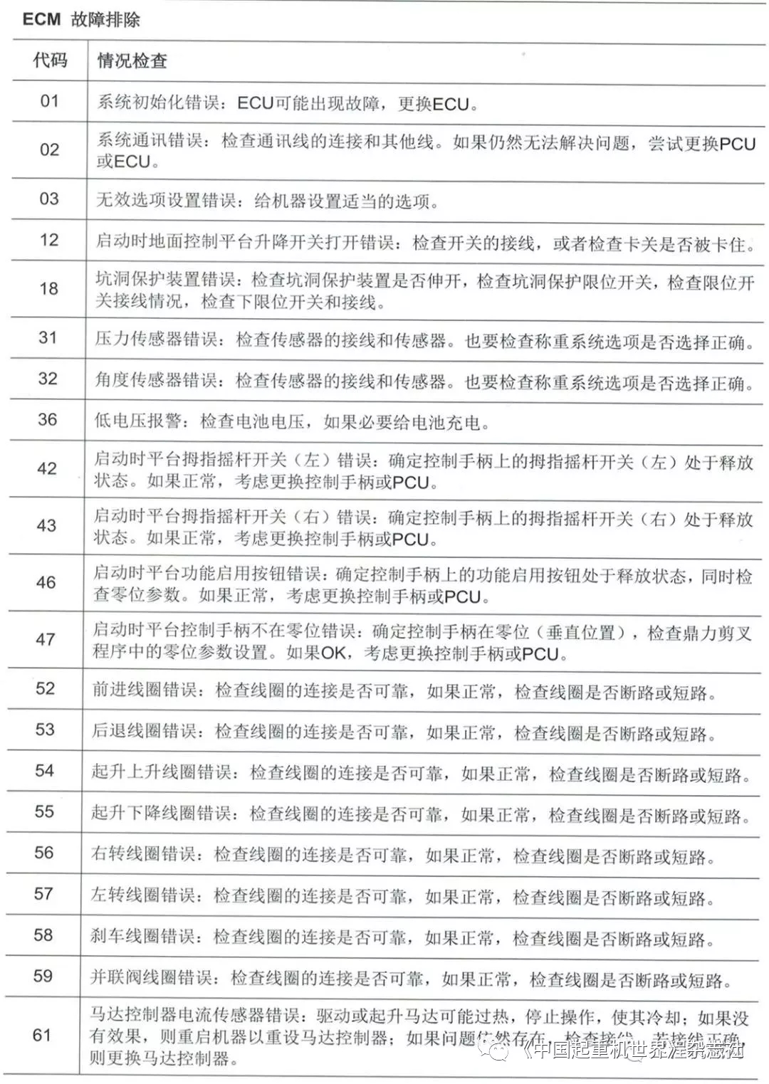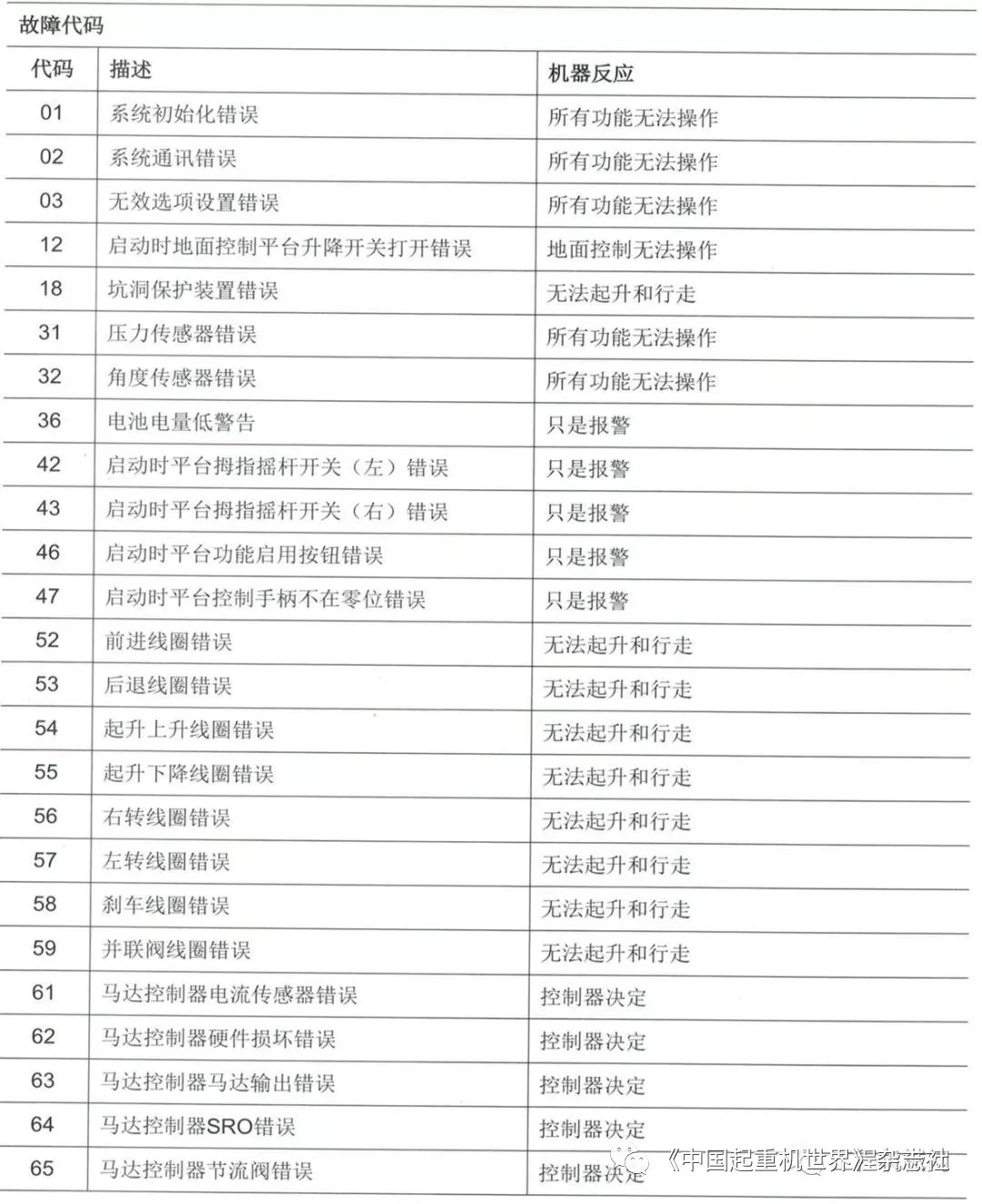 移動版:高空作業(yè)平臺故障代碼描述及排除方法1