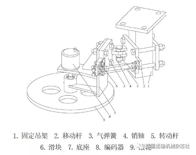 摘 要:現(xiàn)有索道輪體測速裝置采用齒輪嚙合傳遞轉(zhuǎn)速給測速儀器實現(xiàn)測量,其測量精度容易受線路載荷、電機 運行狀態(tài)以及輪體尺寸和加工精度等多方面因素影響,而且測速裝置結(jié)構(gòu)形式單一,不具備通用性,緩沖減振效 果不佳。研究設(shè)計一種多桿式可調(diào)節(jié)緩沖測速裝置,通過工業(yè)氣彈簧和滑動支座的組合運動,實現(xiàn)測速儀器0~31° 角度可調(diào),從而適應不同工況安裝需求,同時工業(yè)氣彈簧實現(xiàn)主動調(diào)節(jié)和緩沖減振,消除了測速過程中的沖擊, 提高了測量精準性。