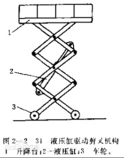 (2)下圖是起升液壓缸和剪叉機構構成的起升機構。